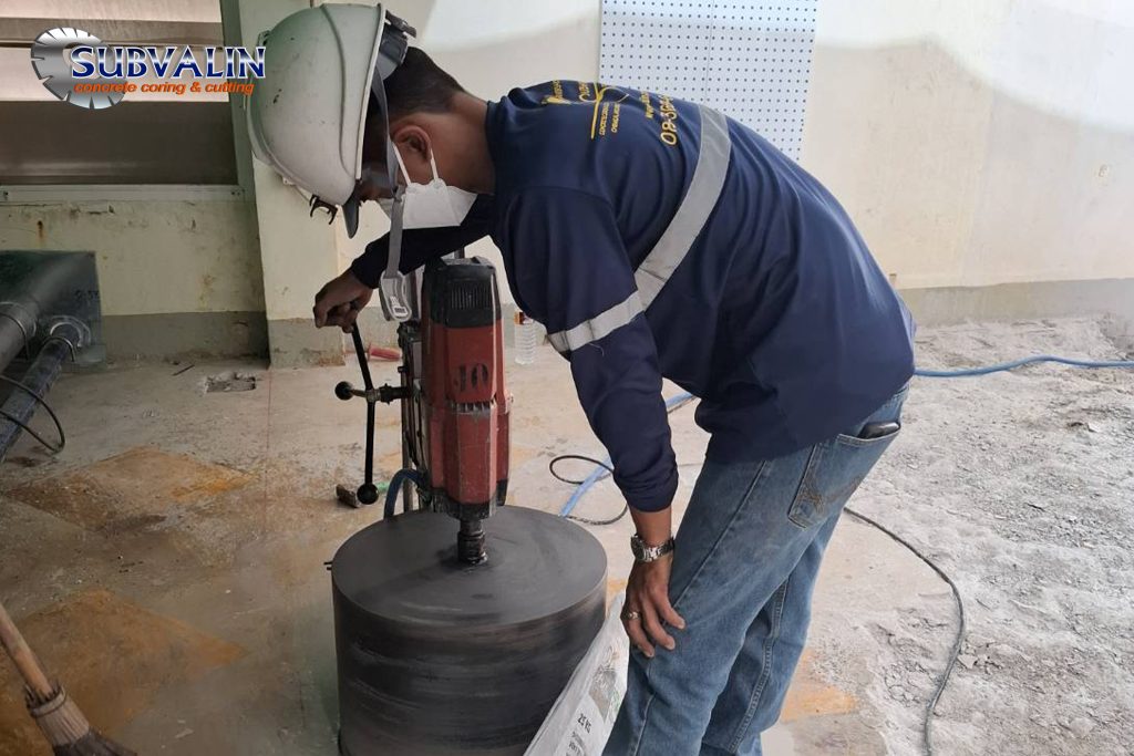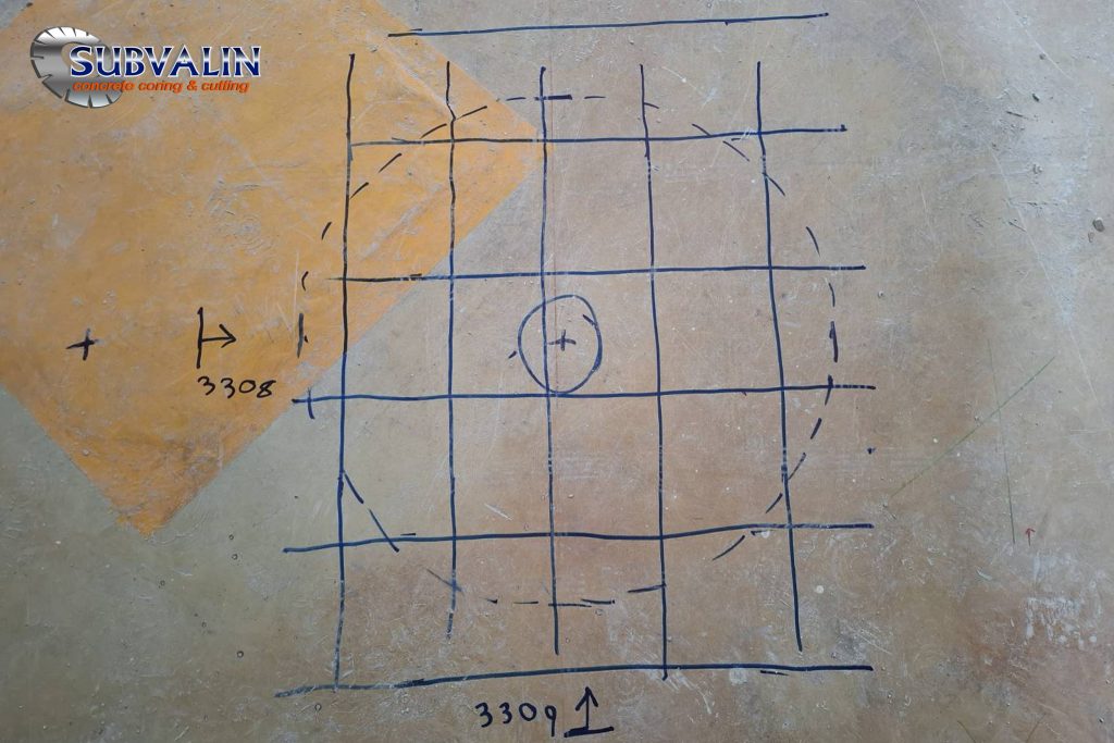 ลักษณะงาน : งานสแกนพื้นคอนกรีต พร้อมคอริ่งเพื่อตอกเสาเข็ม 4 จุด Dia 50 cm หนา 20-30 cm รวมขนย้ายออก