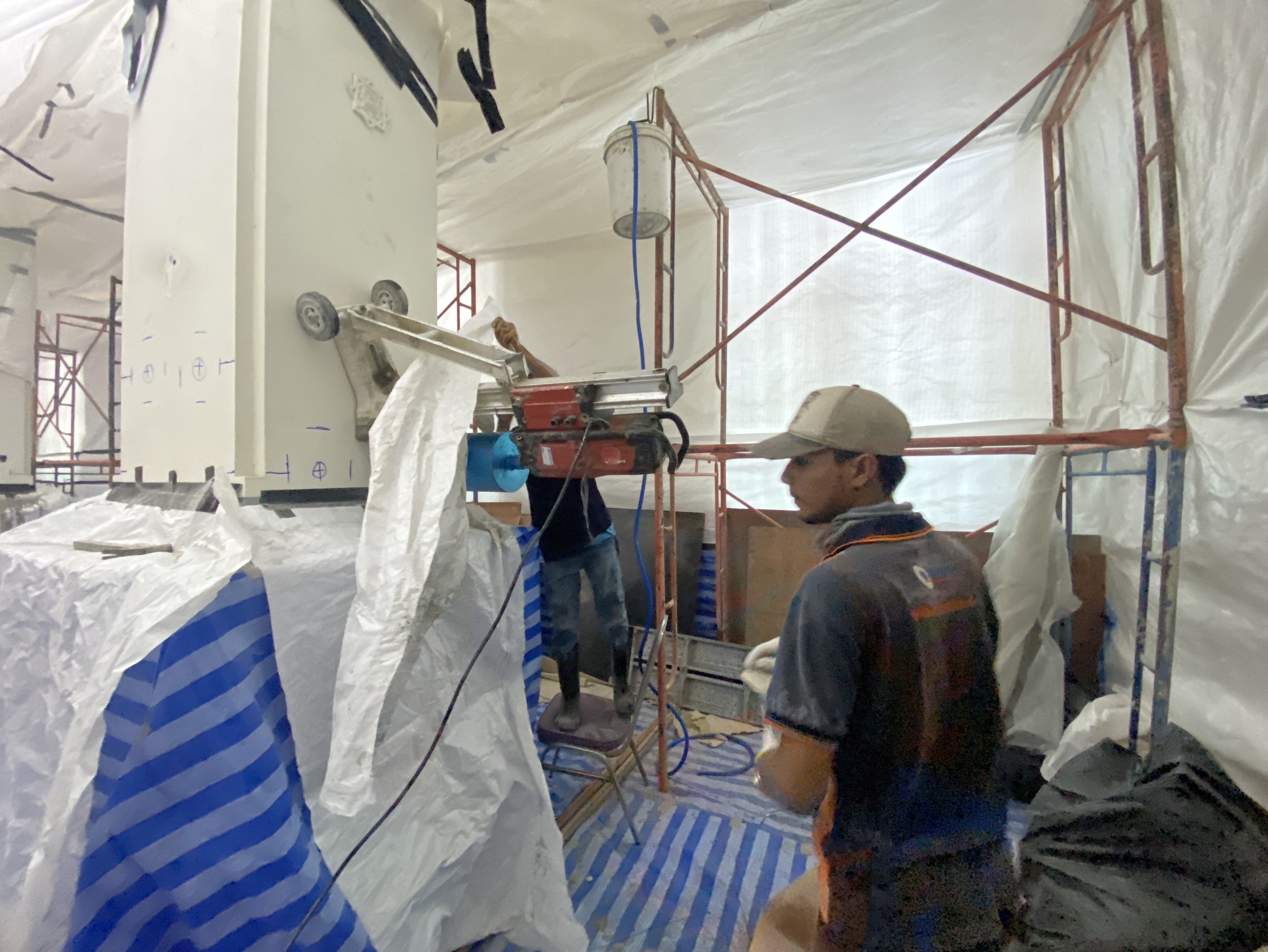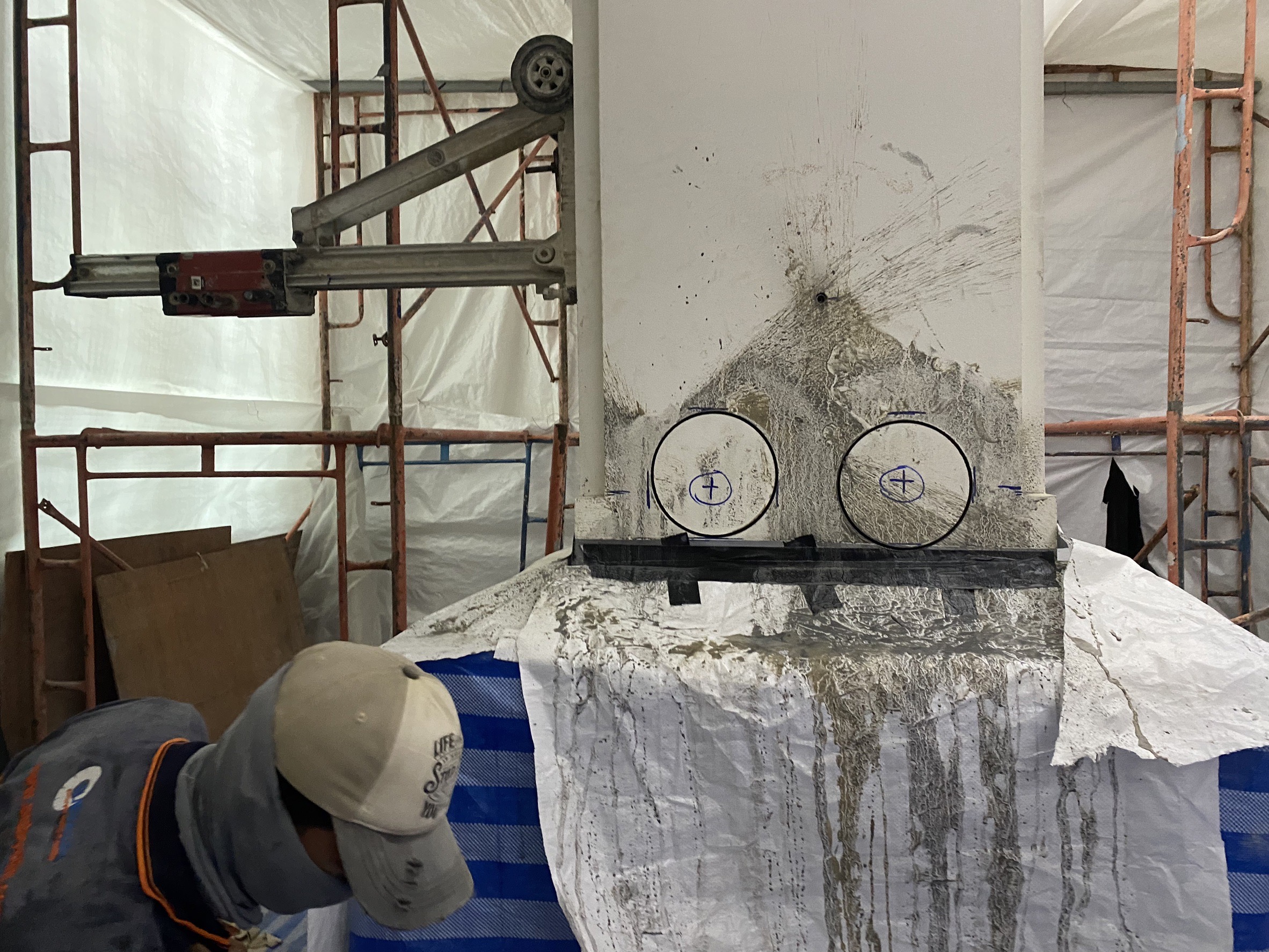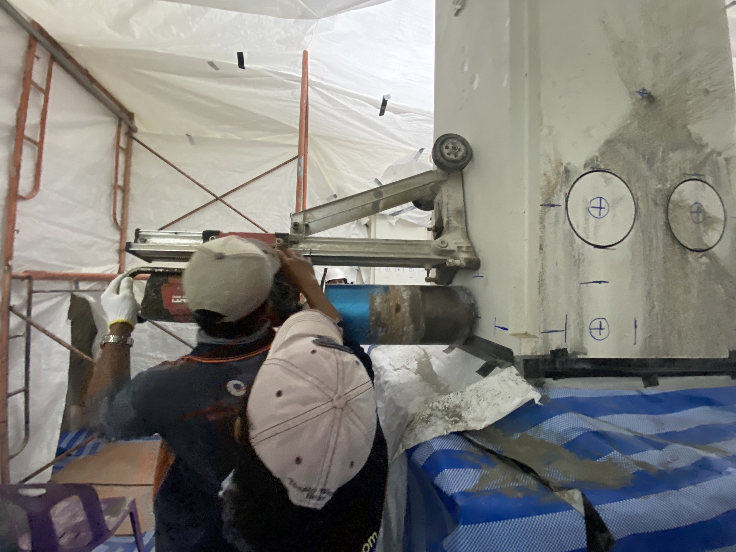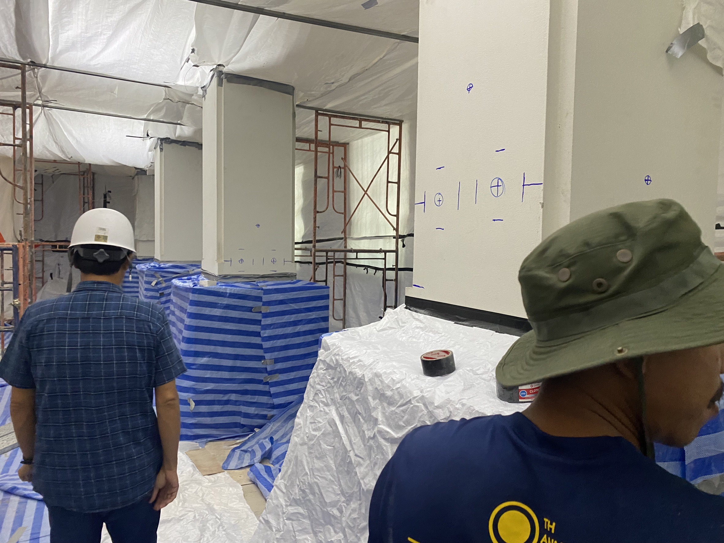 งานงาน Coring เสาภายในพระอุโบสถ และสกัดให้เห็นเหล็ก 704 จุด
