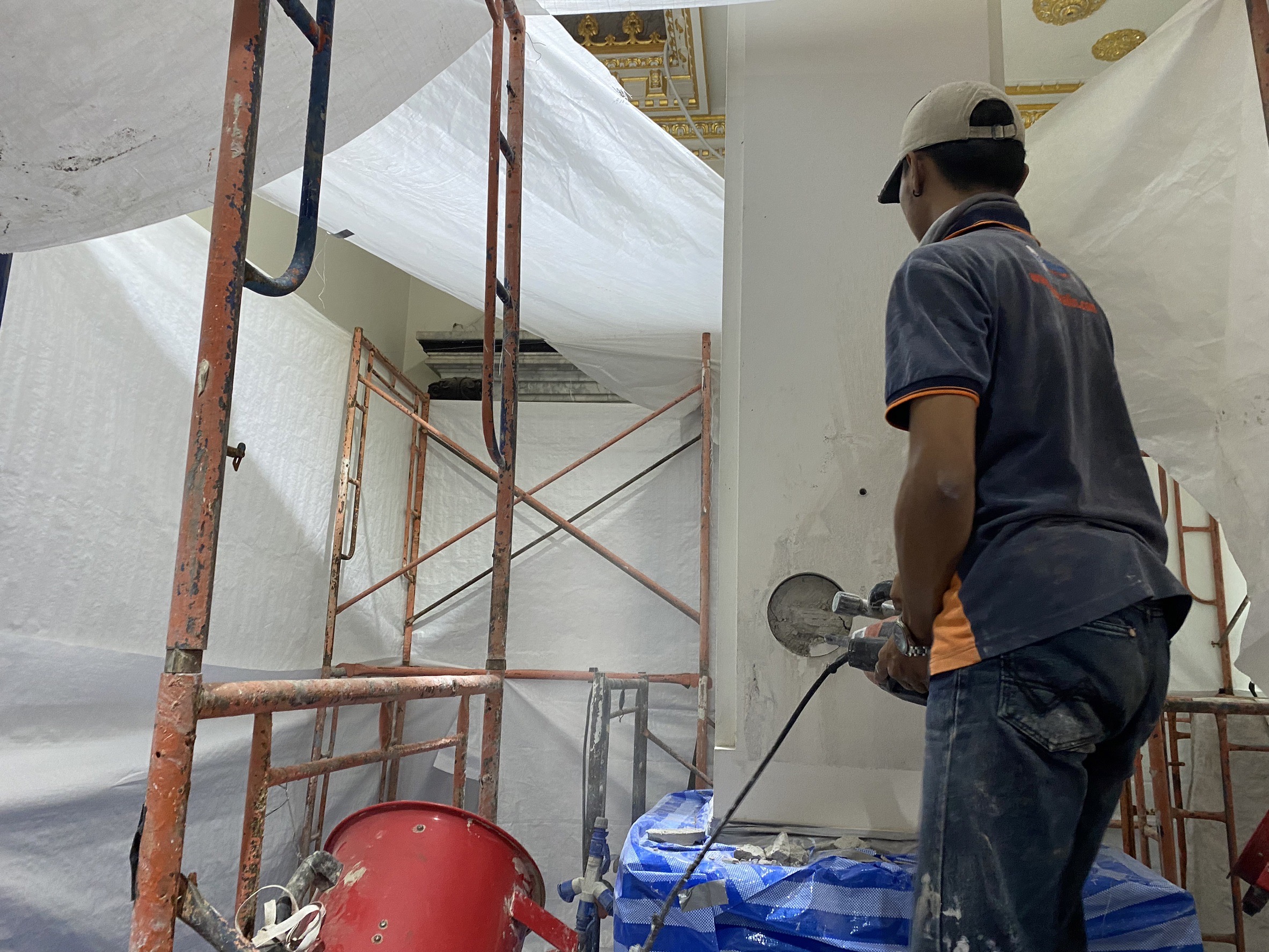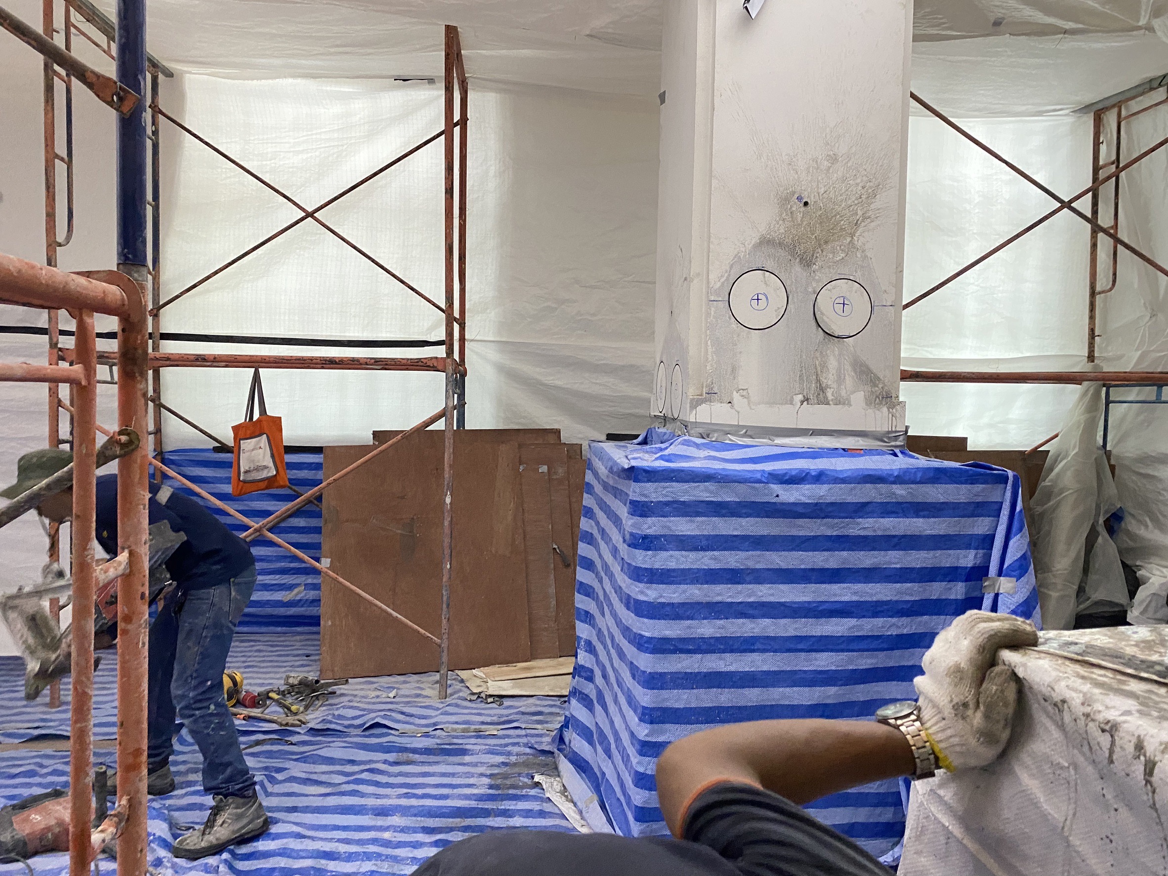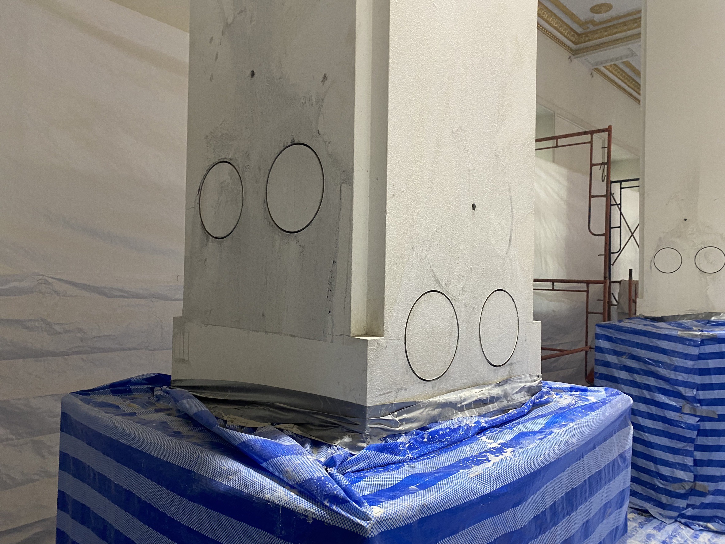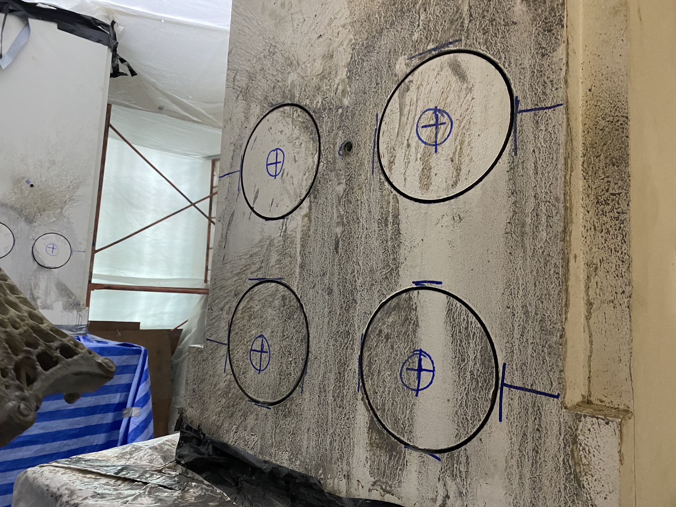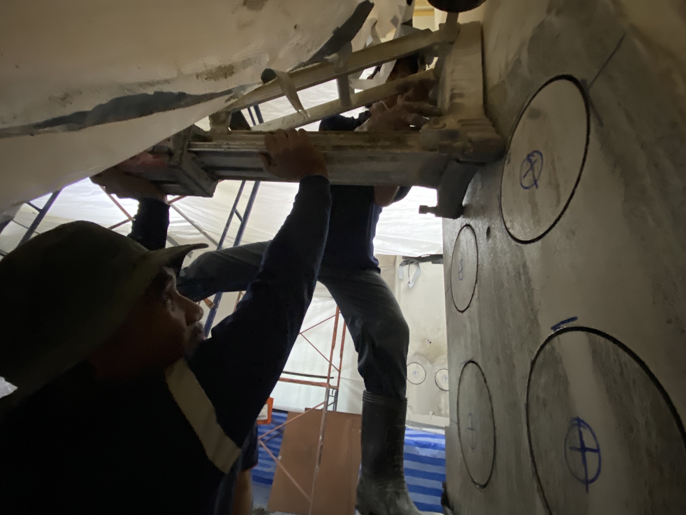 งานงาน Coring เสาภายในพระอุโบสถ และสกัดให้เห็นเหล็ก 704 จุด