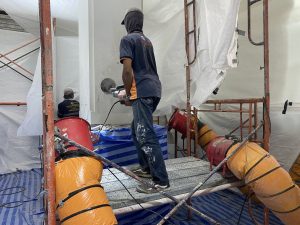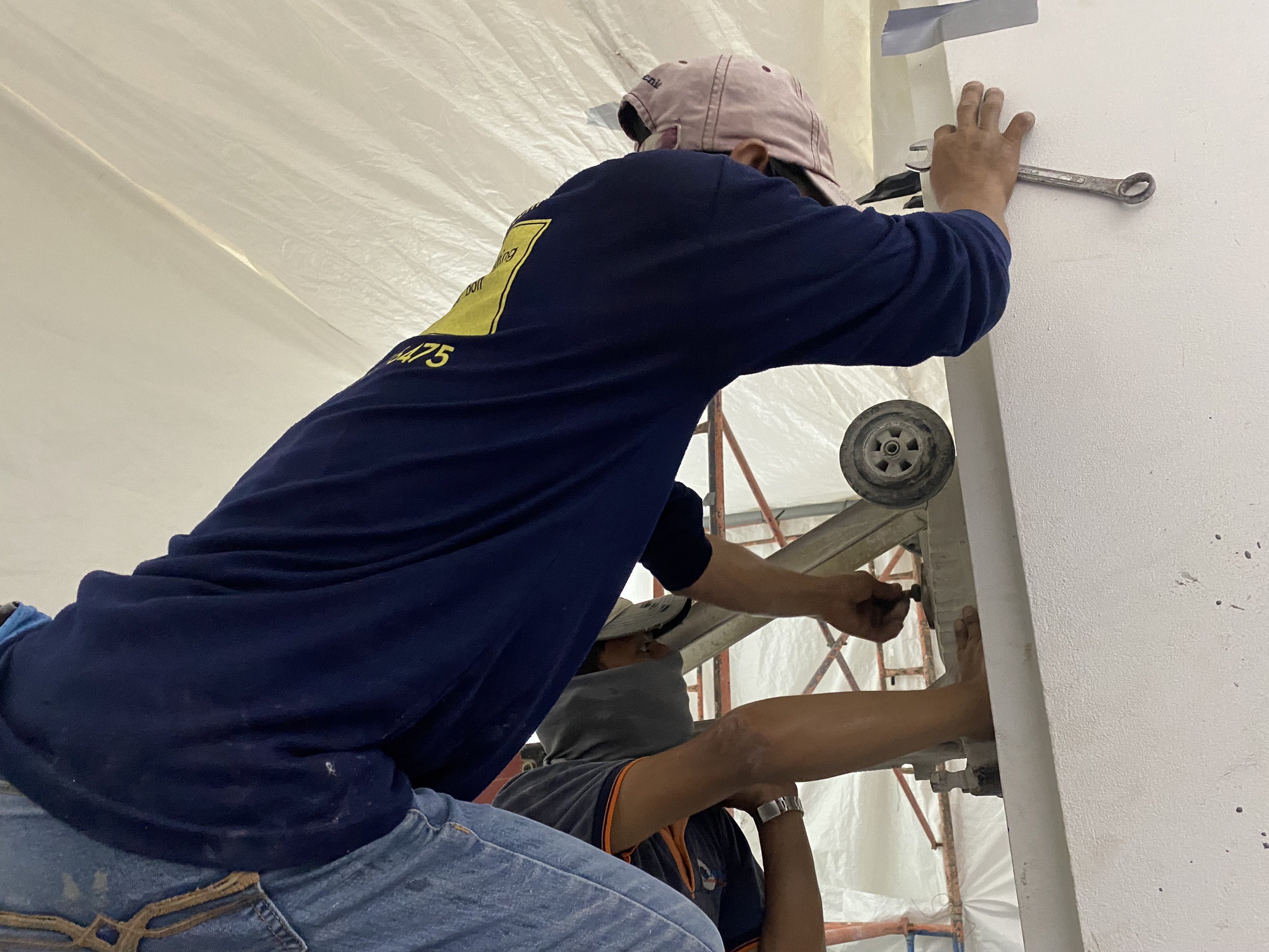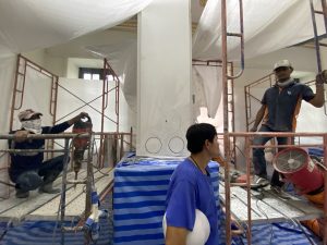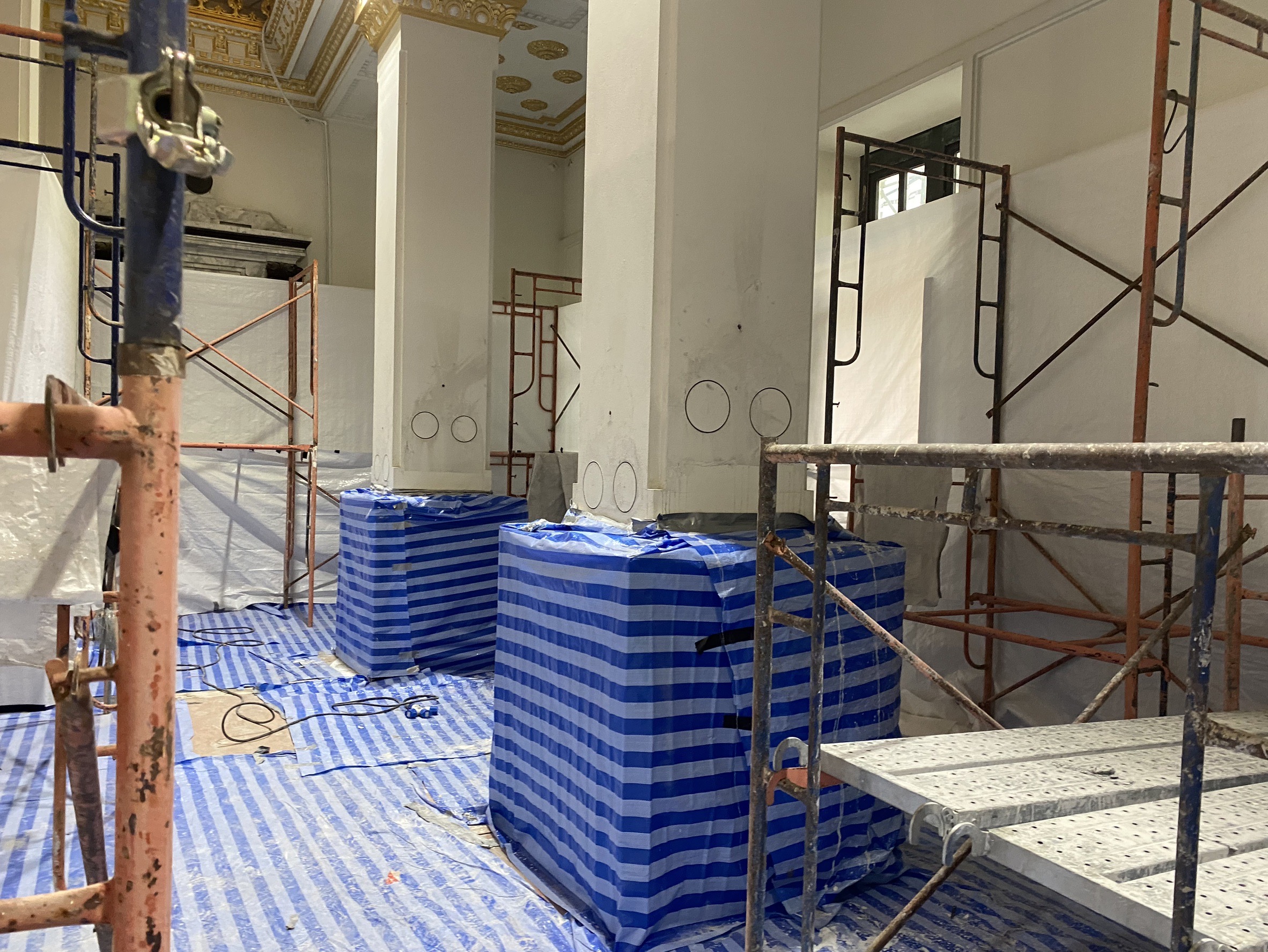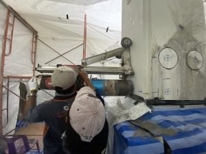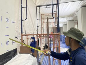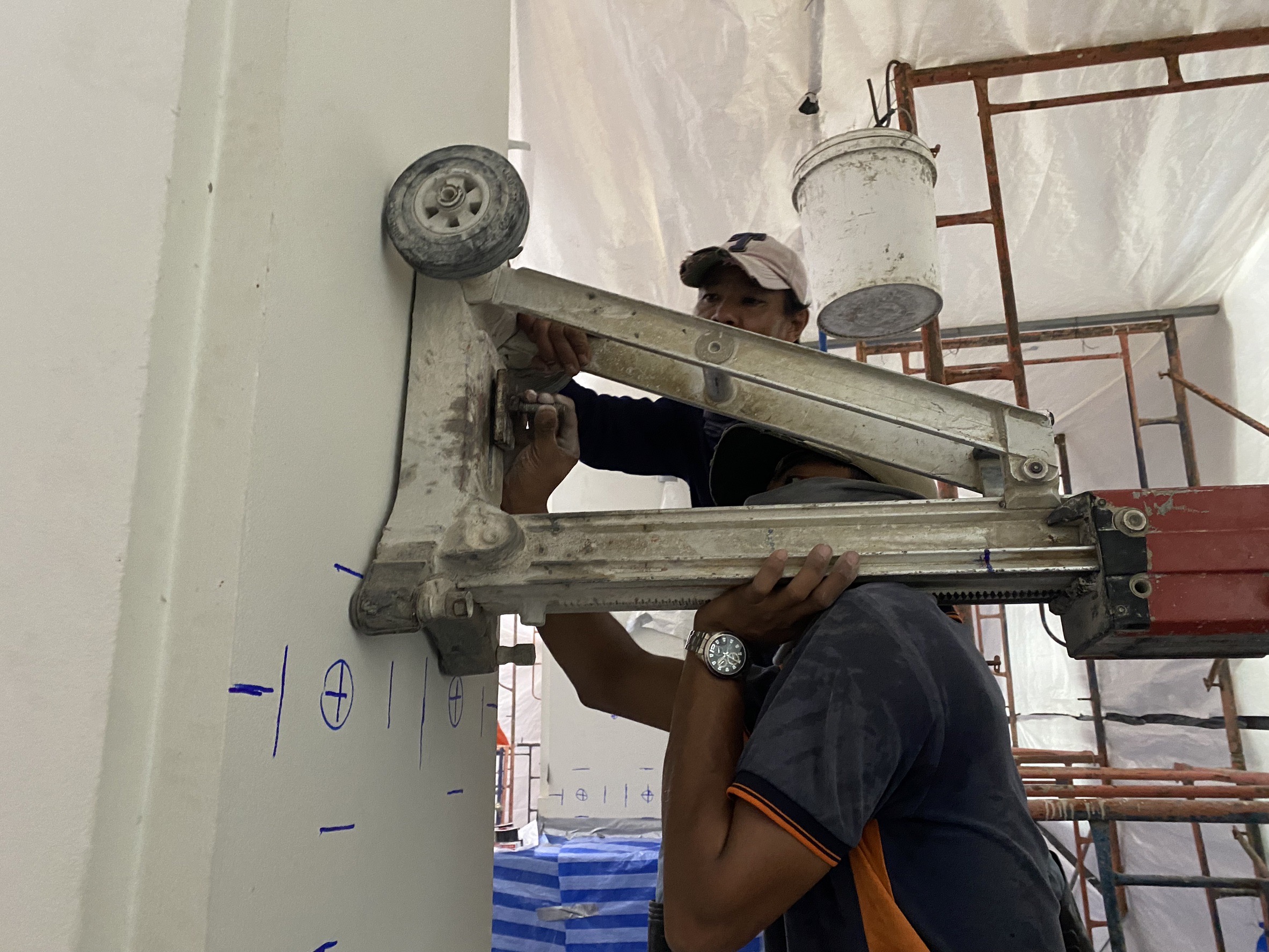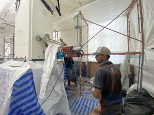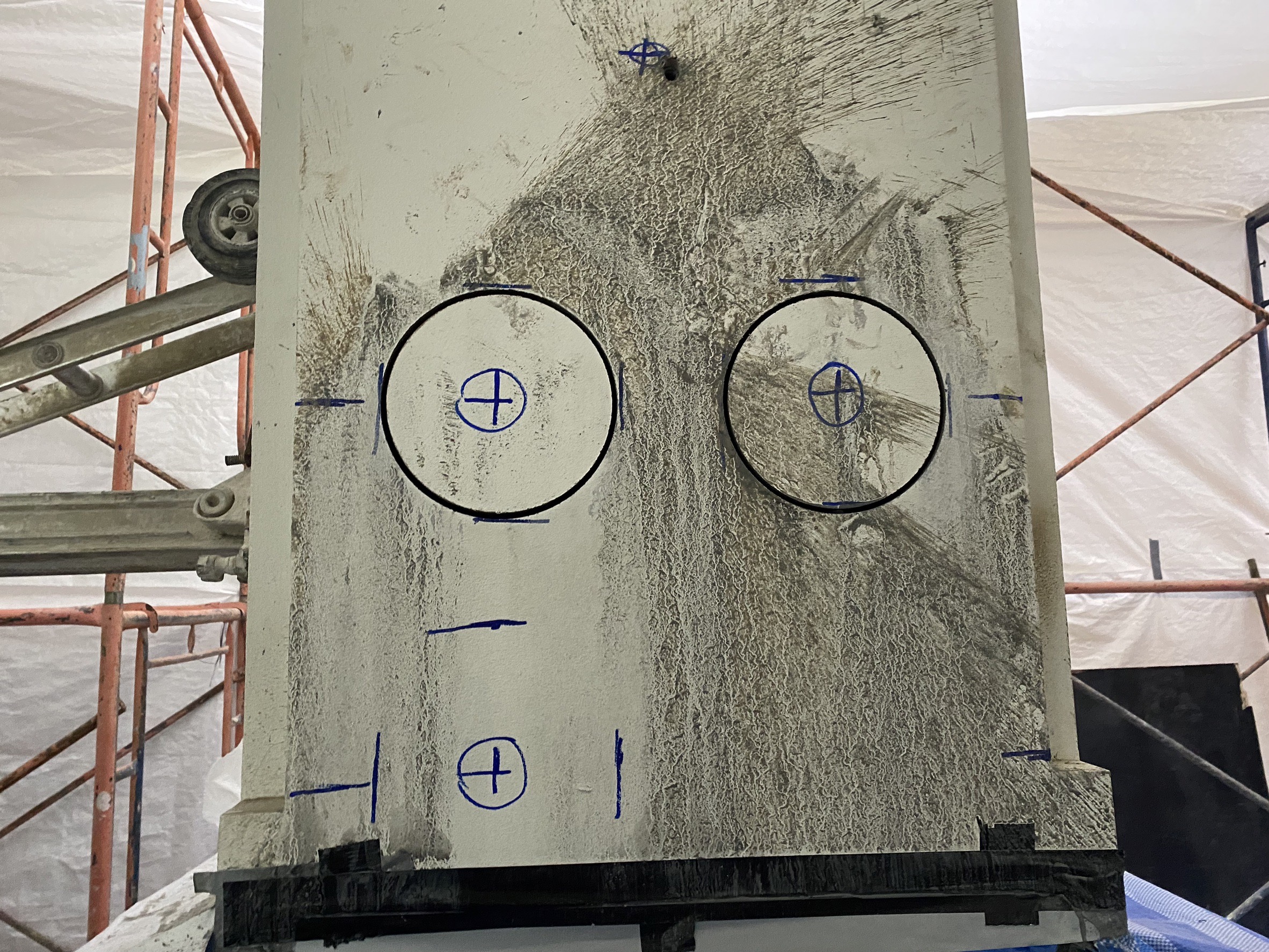 งานงาน Coring เสาภายในพระอุโบสถ และสกัดให้เห็นเหล็ก 704 จุด